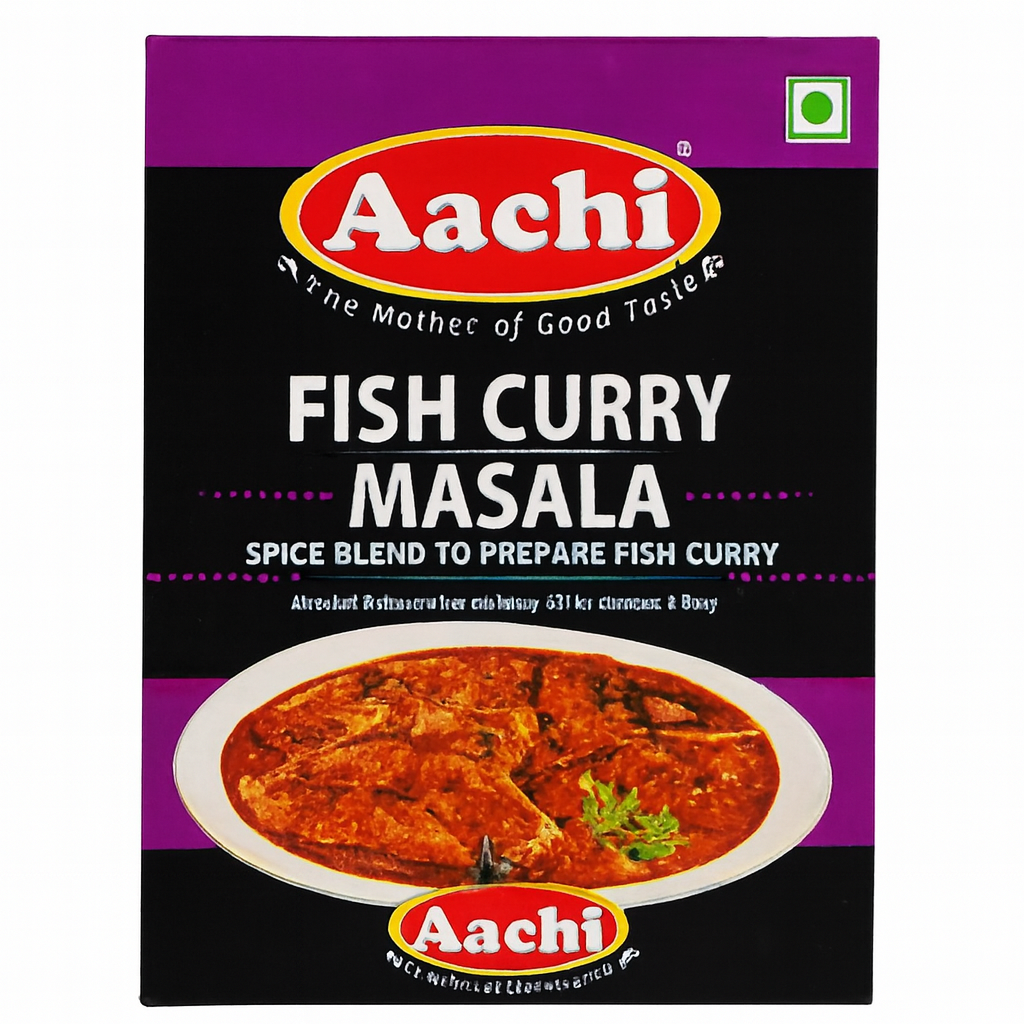 Aachi Fish Curry Masala (160gm) is a ready-to-use, authentic South Indian spice blend that simplifies making flavorful fish curry at home. This versatile masala features a rich combination of coriander, chili, cumin, turmeric, and other traditional spices, creating a warm, aromatic, and delicious base for your seafood dishes. It is ideal for all types of fish, requires no measuring of individual spices, and can be used for curries, stews, or fried preparations.