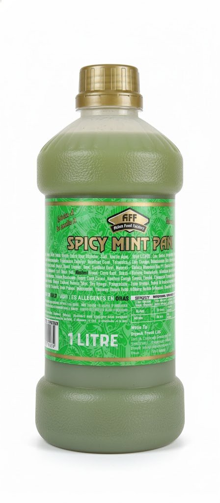 AFF Spicy Mint Panipuri Pani is a ready-to-use spicy mint-flavored water, traditionally used to make the filling for pani puri or golgappa