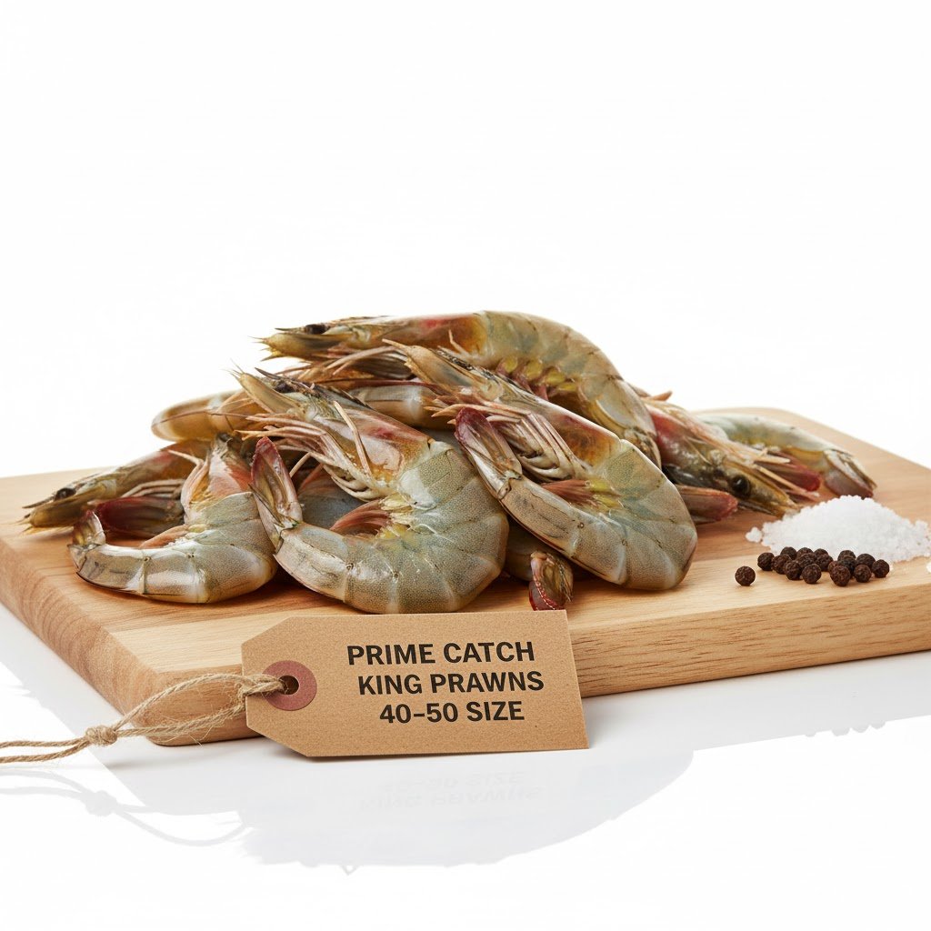 King Prawns 40–50 size are large, succulent prawns prized for their firm texture, sweet flavor, and versatility in cooking, making them ideal for grilling, curries, stir-fries, or chilled seafood platters.