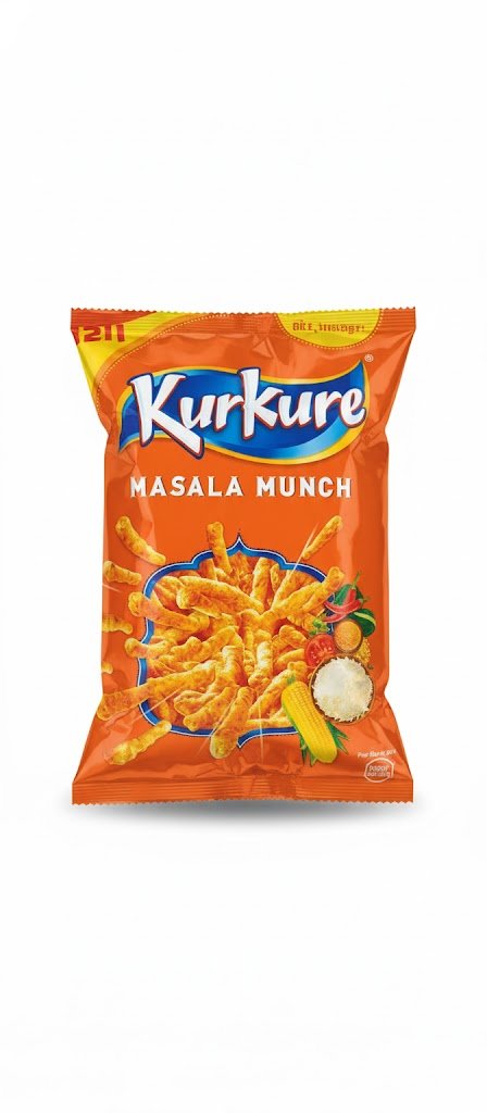 Kurkure Masala Munch is a crunchy, savory snack made from a blend of corn meal and rice meal, seasoned with a fiery, aromatic mix of Indian spices