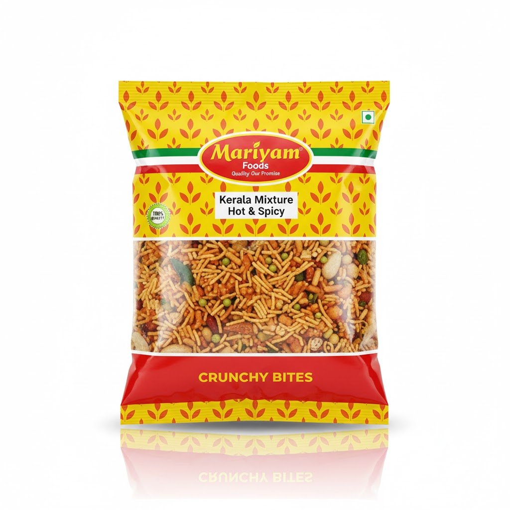 Experience the authentic, spicy taste of Kerala with Mariyam Mixture, a 200gm pouch of crunchy snacks. This blend features a traditional mix of crispy ingredients like sev and boondi, savory peanuts, and aromatic fried curry leaves, all seasoned with classic South Indian spices. It’s perfect as a tea-time snack, party appetizer, or on-the-go treat for those who enjoy a flavourful and satisfying bite.