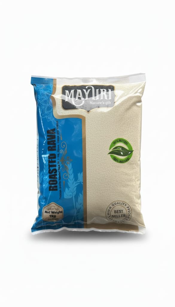 Experience the convenience and wholesome goodness of Mayuri Roasted Rava (1kg), a kitchen essential for healthy and delicious meals. Sourced from the finest durum wheat, our rava is hygienically processed and pre-roasted to lock in flavor, aroma, and nutrients.