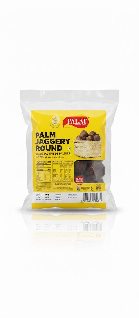 PALAT Palm Jaggery Round 1KG offers a natural, unrefined sweetener sourced from palm tree sap, known for its rich caramel-like flavor and numerous minerals.