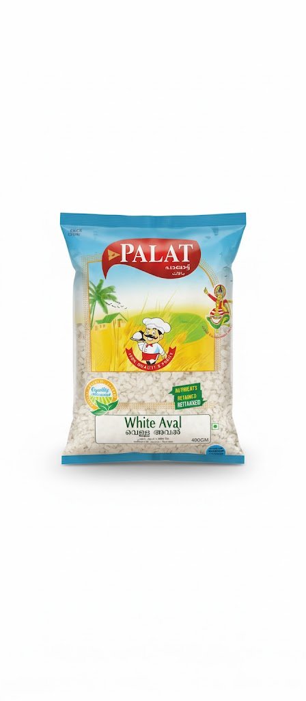 “Palat White Aval” is a product name for white flattened rice (also known as Poha or Avalakki) manufactured under the “Palat” brand. Aval is a popular, easily digestible breakfast staple and snack in South India, particularly Kerala