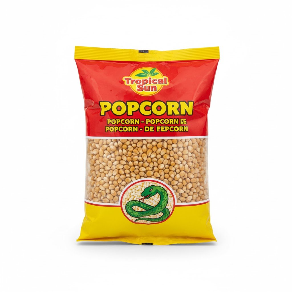 Tropical Sun Popcorn consists of unpopped popcorn kernels (maize) that users pop themselves, known for their natural taste and hearty crunch