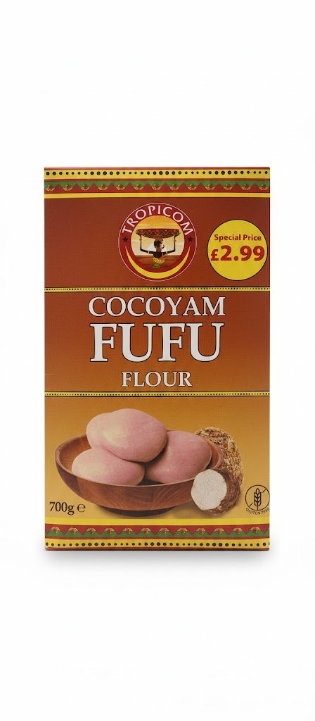 Tropicom Cocoyam Fufu Flour is a versatile and delicious staple in Caribbean and African cuisine. This 700g bag of flour is made from premium cocoyam