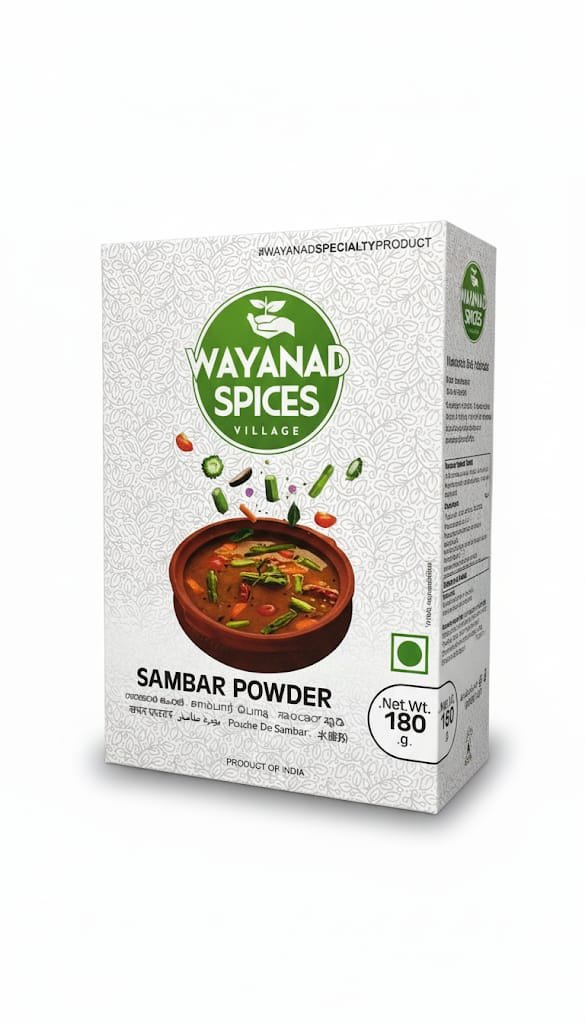 Wayanad Spices Sambar Powder – 180gm ,Bring the authentic, aromatic flavours of a traditional Kerala kitchen into your home with Wayanad Spices Sambar Powder. Crafted from a time-honoured recipe using spices sourced directly from the lush hills of Wayanad, this 180gm pack is your key to a rich, flavourful, and perfectly balanced sambar every time